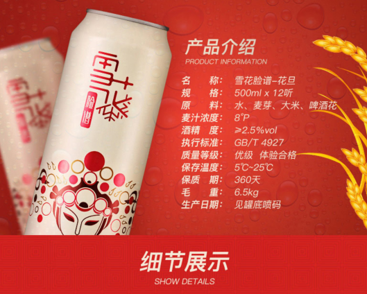 雪花啤酒价格的变动是必然的,不过雪花啤酒电商的价格是没有变动的。雪花啤酒脸谱系列是雪花啤酒的新品系列酒,这款雪花啤酒花旦是华润雪花近两年才推出的新品。这款雪花啤酒花旦酒液金黄,泡沫洁白细腻、持续时间长,在泡沫消失后还能持久酒液挂杯,清新酷爽又不失丰满,酒味醇厚之余又苦味适中,非常符合年轻人口味。