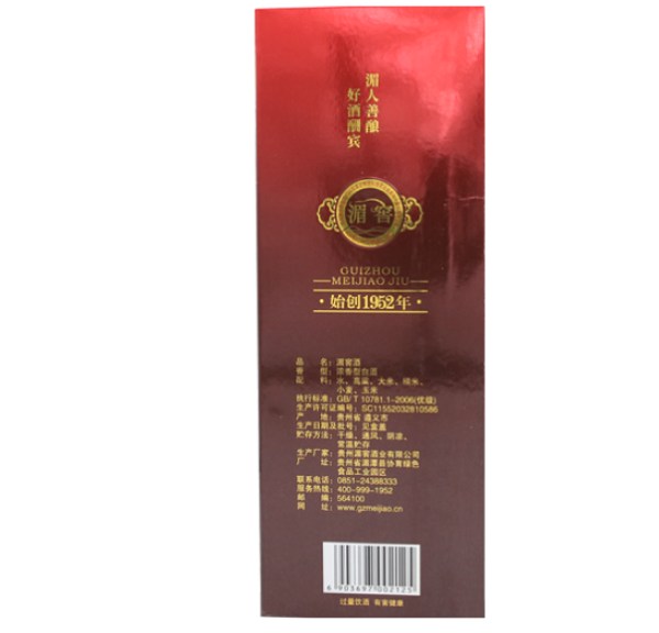 众所周知,贵州省是白酒第一大省,名酒众多。在贵州当地有八大名酒:茅台酒,董酒,习酒,金沙酒,湄窖等。说到湄窖酒,名气可不小,贵州老八大名酒之一,它还是继茅台之后第二个在博览会中获金奖的白酒。1988年德国莱比锡国际博览会。贵州湄窖在几千家名酒品牌中获得金质大奖章,为各国各地展示了中国白酒的形象。其中这款湄窖52度浓香型白酒,是贵州湄窖有限公司荣誉生产,被称为黔派浓香典范。批发,团购:13607692918(微信同步)