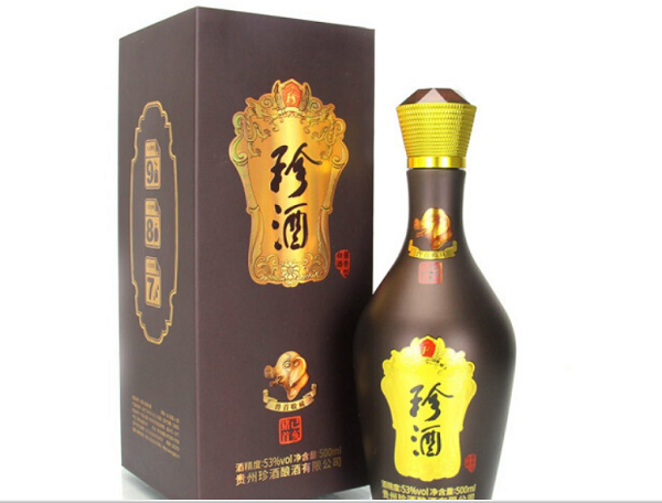 贵州珍酒酿酒有限公司,前身是始建于1975年的“贵州茅台酒易地试验厂”,是上世纪70年代,为实现毛泽东主席以及周恩来总理等老一辈国家领导人“要把茅台酒搞到一万吨”的宏伟夙愿而组建。贵州珍酒市场流通的主要是:普通珍酒、珍品珍酒、珍一号、精品珍酒。有着茅台的酿酒技术但市场的因素决定了珍酒的价格,珍酒价格是非常适合普通消费群体。 珍酒 本品用优质高粱,小麦为原料配以当地甘冽泉水采用中国传统独特工艺,科学精酿,长期窖藏,精心勾兑而成,该酒酱香突出,优雅圆润,纯厚味长,空杯留香持久,实为“酒中珍品”先后荣获国家优质产品奖,北京国际博览会金奖,轻工博览会金奖,中华文化名酒,香港博览会金奖
