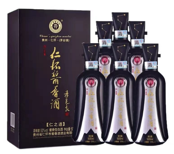 仁怀酱香酒产自中国酒都仁怀市,出品公司贵州省仁怀市酱香酒酒业有限公司是仁怀市政府组建的国有全资公司仁怀市酱香型白酒产业发展投资公司旗下。仁怀酱香酒仁之道精选高粱、小麦、优质水源,采用传统工艺,古法酿造,端午制曲,重阳下沙,二次投料,九次蒸煮,八次发酵,七次取酒,历经三到五年贮存才真正面世。