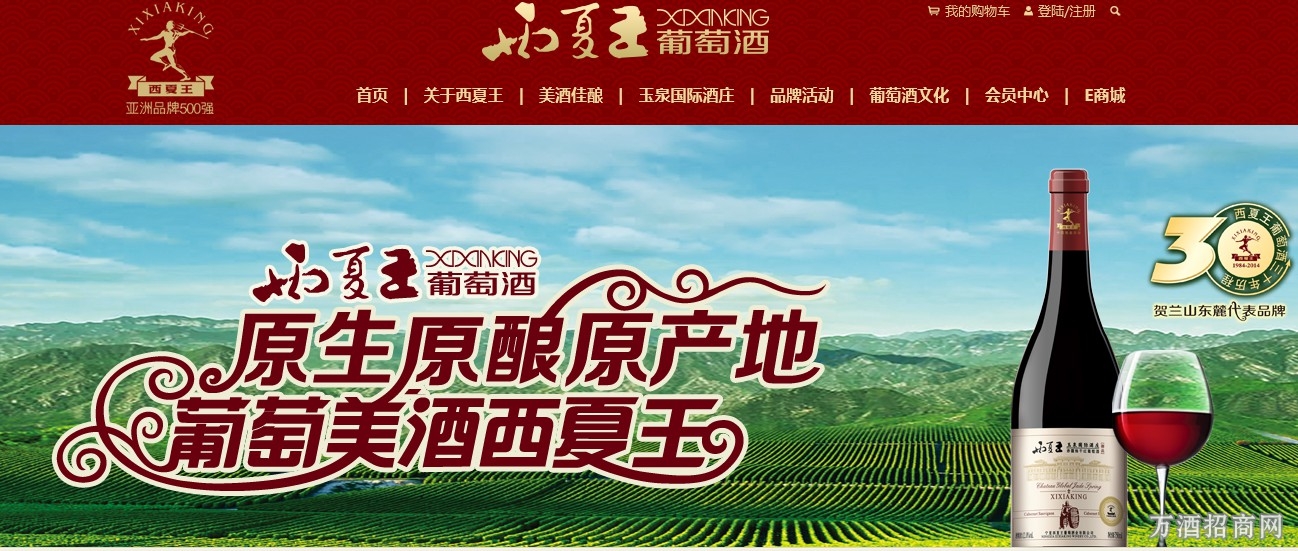 打开西夏王葡萄酒官网的首页,你会看到横向依次展示着西夏王的美酒佳酿、酒庄介绍、品牌活动,以及关于西夏王葡萄酒的故事的文化环节,更有西夏王葡萄酒的会员中心,简洁明了。另外添加了“E商城”在线购买的链接,网上购物是时尚方便的首选,西夏王葡萄酒价格属于中高档,添加购物环节能够方便大家在浏览官网的同时,看到为之心动的产品立马拍下,更加方便快捷。